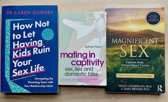 For help in this life stage, see the book How To Not Let Having Kids Ruin Your Sex Life, by Dr Karen Gurney; and for straight-talking opinion the book Mating In Captivity by Ester Perel.